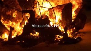 Eyewitness say the lorry was driving towards Afful Nkwanta on the inner lane of the road not far from the traffic light at Anloga Junction when the tricycle crossed it in an attempt to move from outer to the inner lane of the same stretch.